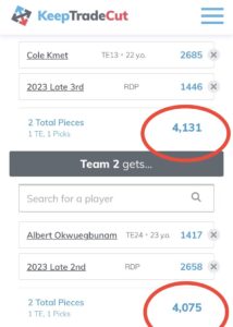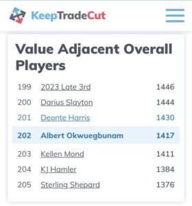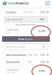Cole Kmet, Irv Smith, TYLER HIGBEE, ADAM TRAUTMAN, & TYLER CONKLIN are all valued ahead of him on KeepTradeCut…