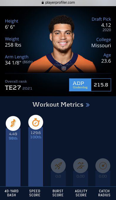 DEN then drafted him at the top of RD4 – a year after drafting Noah Fant in RD1.