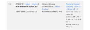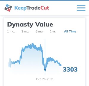 The unknown status (& ability) of QB Trey Lance hasn’t done anything to help Aiyuk’s value either (despite Jimmy G being a relatively low bar to clear).
