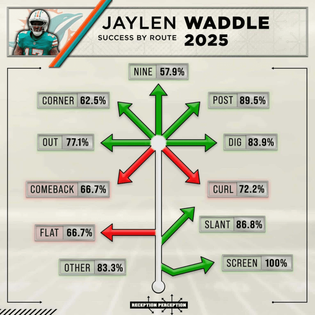 Waddle actually posted career-best marks in Recep Perception in 2025: